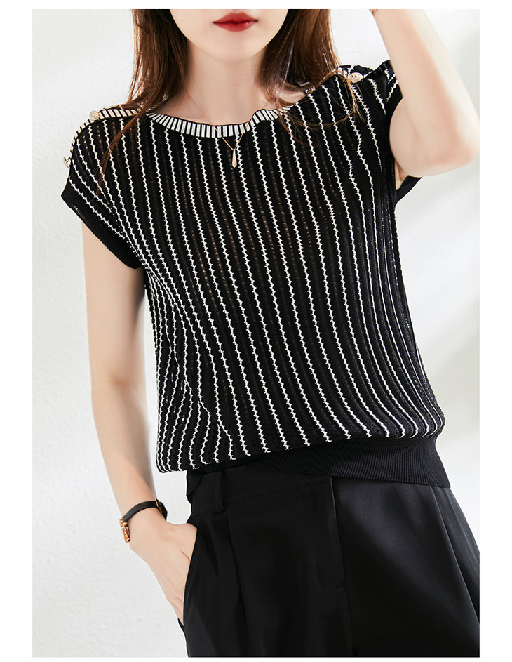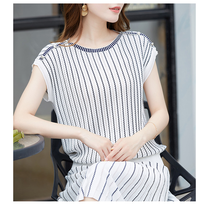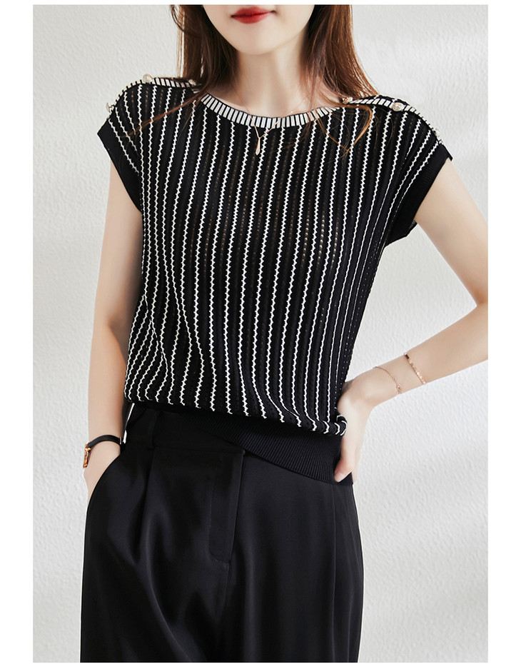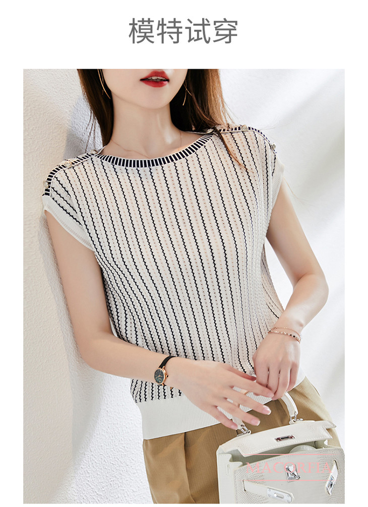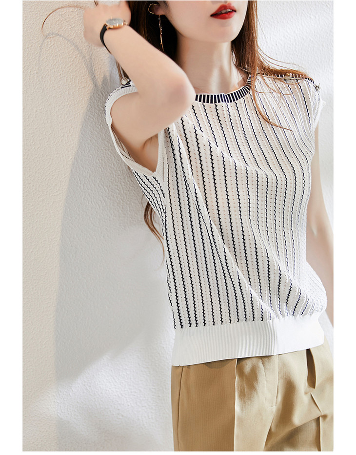 溫柔好穿 2020夏季豎條紋冰絲無袖針織衫