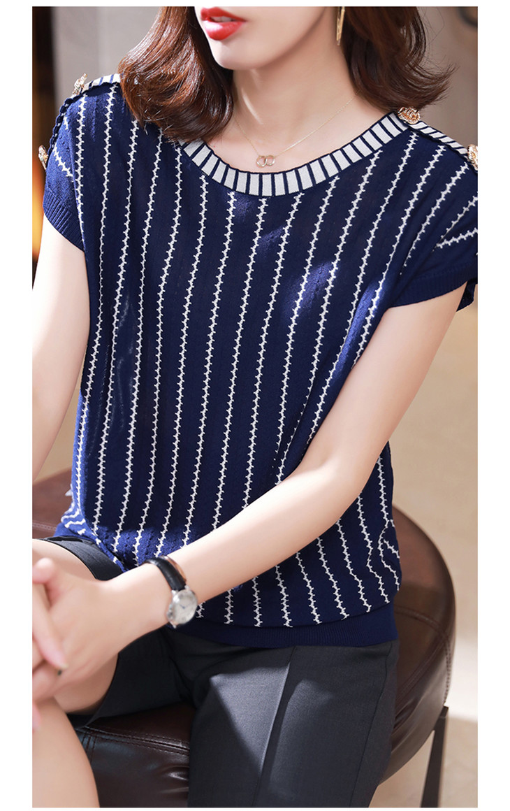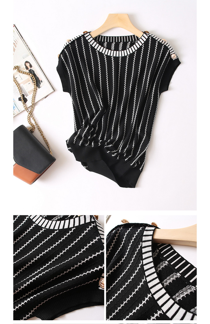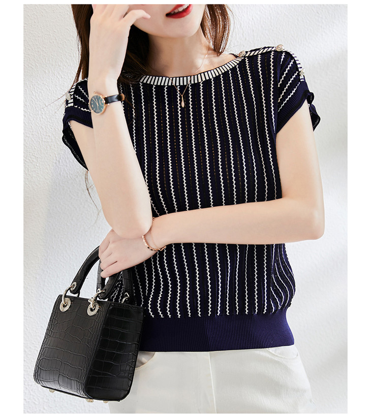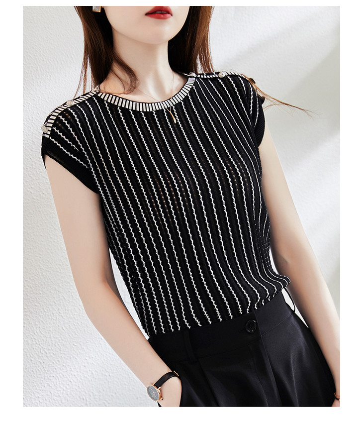 溫柔好穿 2020夏季豎條紋冰絲無袖針織衫