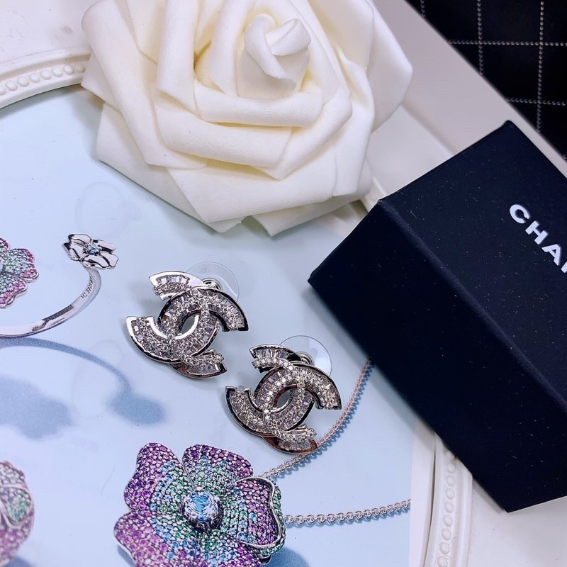 香奈兒Chanel經典系列,雙排鑽雙C小香耳釘進口925純銀微鑲工藝絕對一致哦,最佳約會單品耳釘項鍊同價