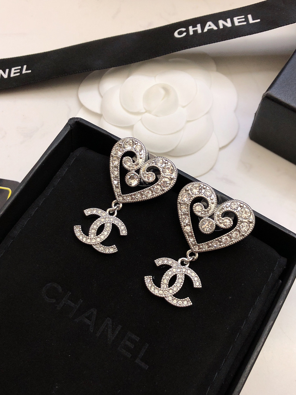 香奈兒耳環熱賣 🔥 爆上新 🆕🆕🆕😎 CHAN 23小香白金鏤空水晶愛心雙C耳環😍