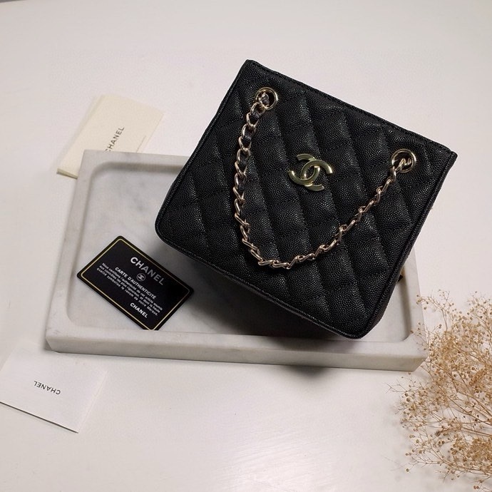 CHANEL 🍁🍁🍁 新款. 托特水桶包. 牛皮球紋魚子醬系列,設計簡單大方,經典體閑為一體,包小但容量大,金色五金配件,可斜跨,手提,單肩背, 🌹❤️ 尺寸:17x15x9cm