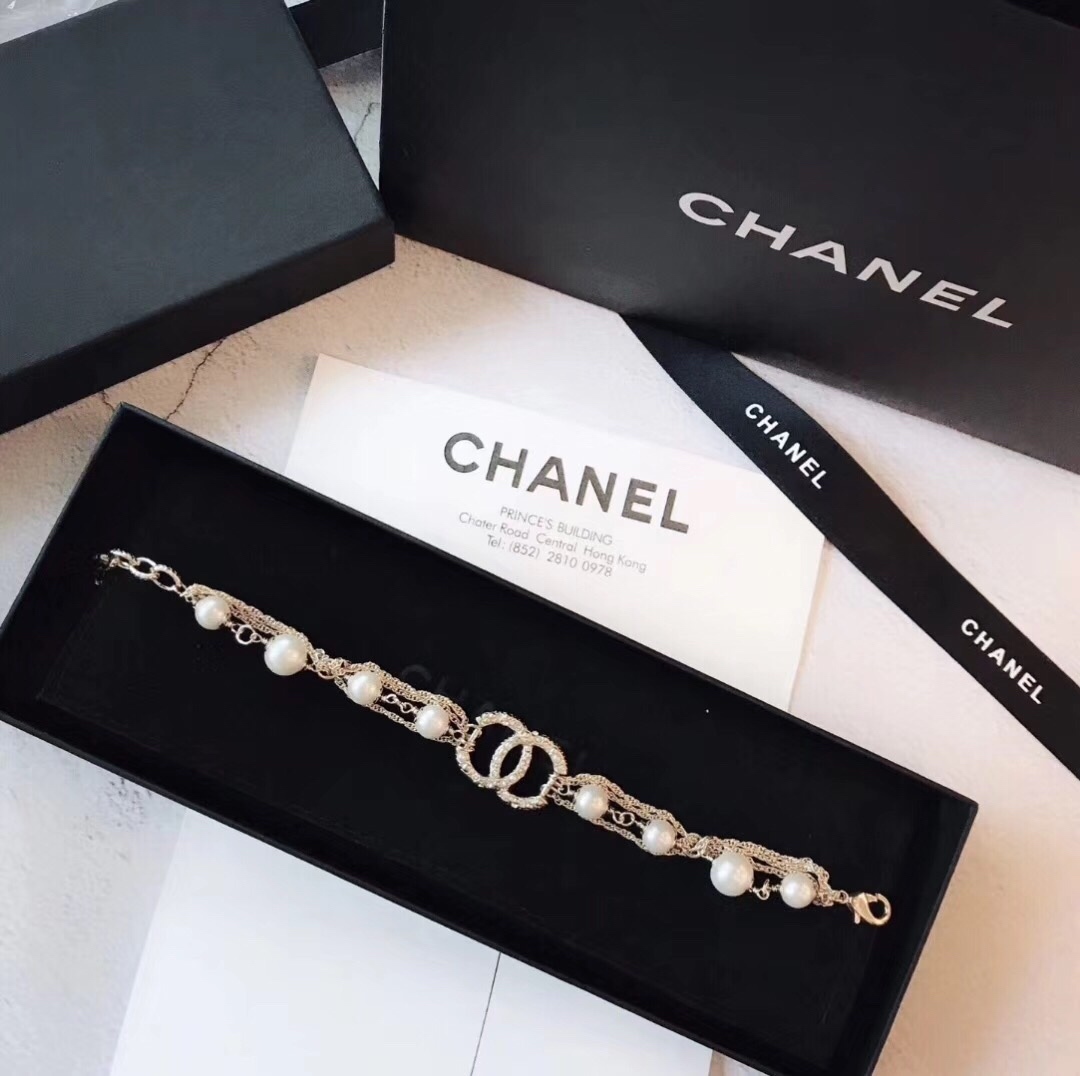 Chanel香奈兒早春新品大小珍珠多層鏈條手鍊黃銅材質