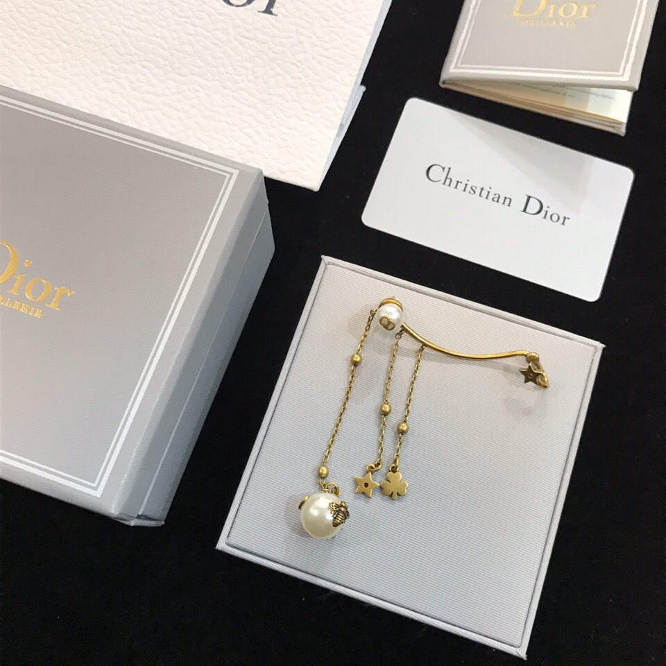 Dior迪奧21新復古淡金色珍珠五角星cd蜜蜂字母單邊耳釘耳夾超個性又時尚的一款單品!