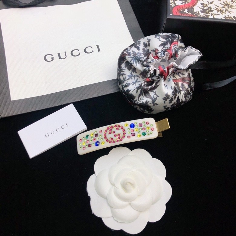 Gucci古馳水晶字母頭飾 🔺 彩色 🔺 髮夾 🔺 白色 🔺 專櫃一致黃銅材質鑲嵌進口模擬鑽