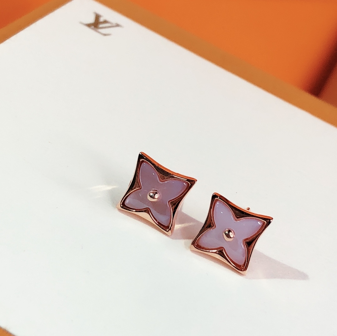 Lv路易威登全新粉紅貝母耳環精選德口s925純銀材質電鍍厚金超美膩 ❗ ️