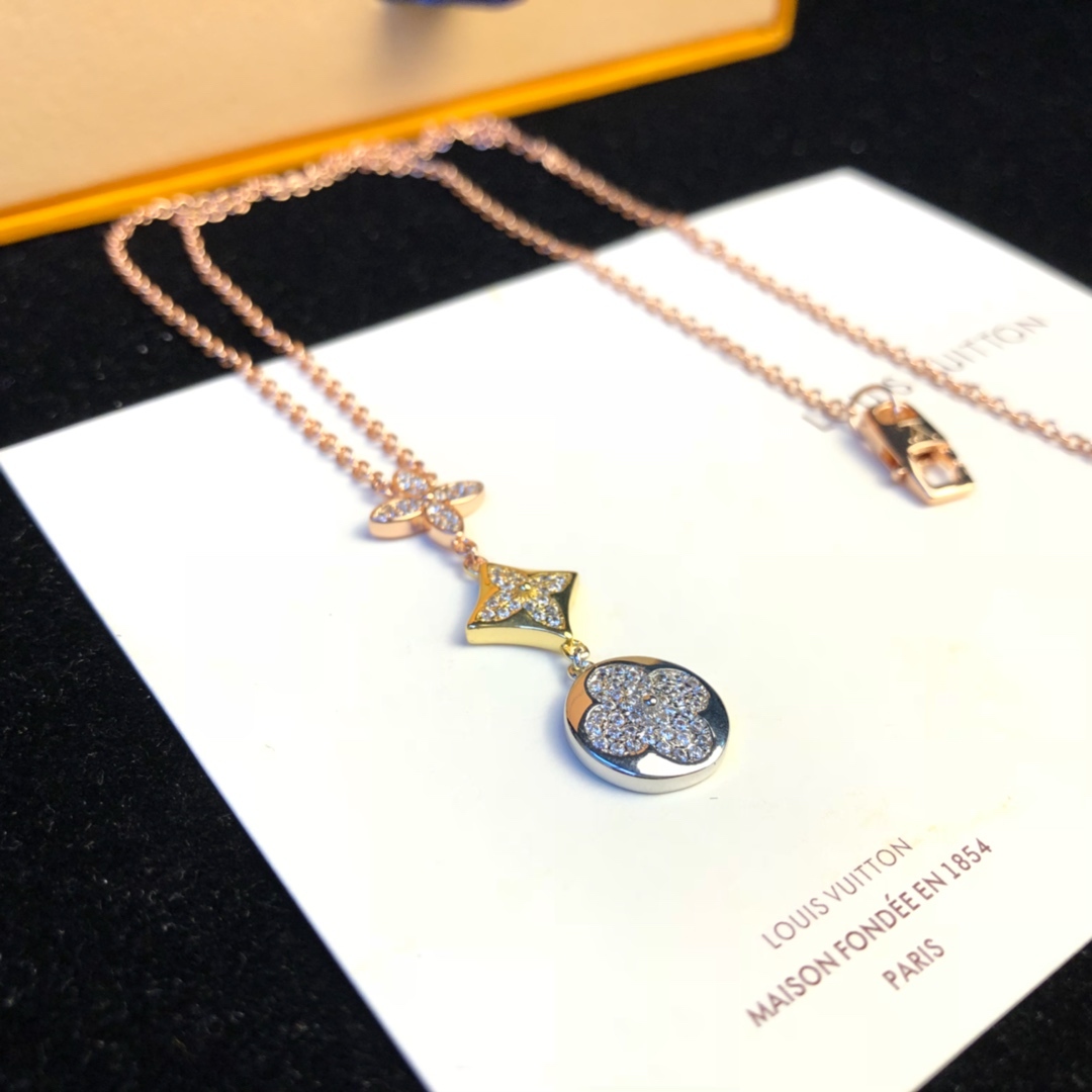 Lv三花項鍊個性帶來時髦、有趣的視覺,明亮式切割工藝使表面拋光非常靚麗360度絢麗奪目方方面面都很到位整體設計簡約